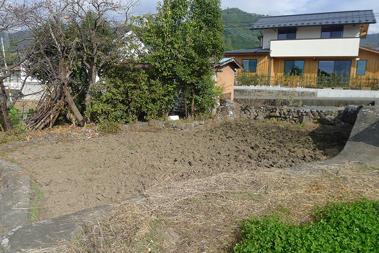 鍬をふるって手作業で田起こし。一日30分程度の作業で一週間かかった。