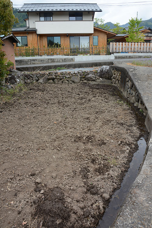 5月1日 ネット通販で購入してあった種もみ(安曇野産コシヒカリ)30gを水に浸す。田んぼの南半分に畦塗り。