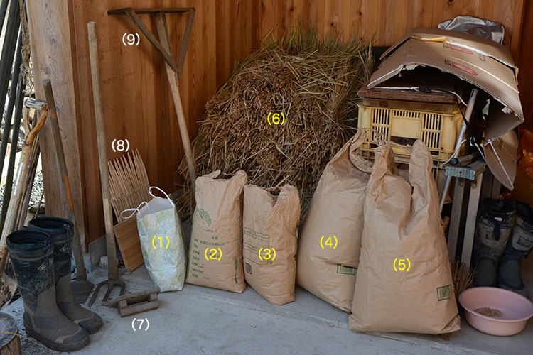 玄米:28kg、籾殻:13kg、稲わら:125束