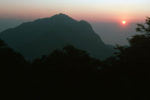 - 尾白川渓谷駐車場6:10→6:40休憩(940m)6:45→7:40休憩(1300m)7:45→8:15水場(1440m)8:45→9:00横手口合流点→9:05笹ノ平→9:30休憩(1710m)9:45→10:15休憩(1880m)10:20→10:30剣の刃渡り10:50→11:10刀利天狗11:20→12:00五合目小屋13:00→13:30橋(2200m)→14:10七丈小屋