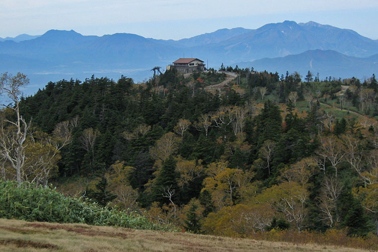 岩菅山頂には誰もいない。天気は良いとは言えないものの、雲の底が高く、遠くの山まではっきりと見える。