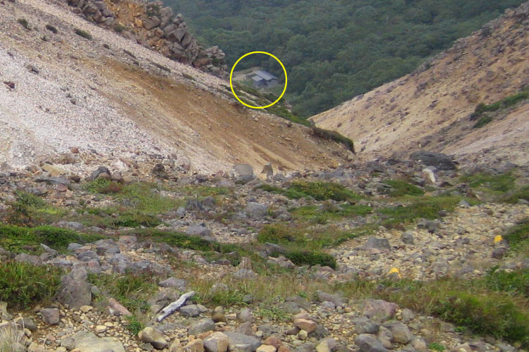 | <茶臼岳> | <茶臼岳山頂> | <眼下に避難小屋> |