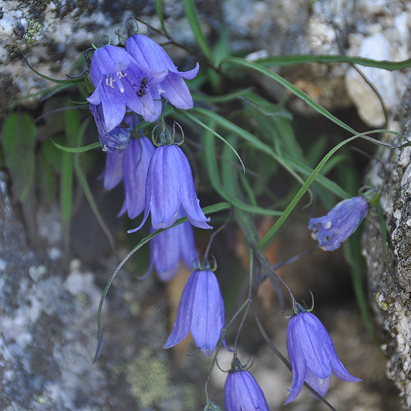 薬師岳から観音岳の稜線はなだらかで展望も良い。タカネビランジの咲き残りとホウオウシャジンがあった。