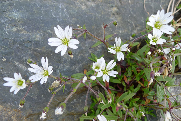 | <クモマミミナグサ> | <杓子岳と白馬槍ヶ岳> | <ウルップソウ> |