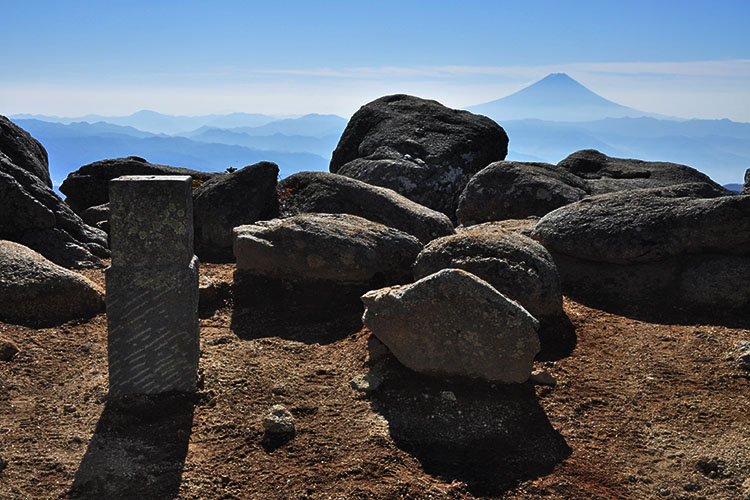 天気は晴れてくるという予報に反して曇っており、いっとき雨がパラついた。富士見小屋からは富士が見えた。ここまでは行列になるほどの登山者数だったが、富士見小屋を過ぎるとぐっと数が減った。登山者のほとんどは瑞牆山の日帰りだったようだ。