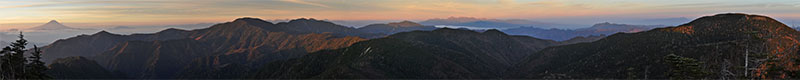 甲武信ヶ岳山頂からのパノラマ(ここをクリックすると、拡大写真が別ウィンドウに表示されます。)