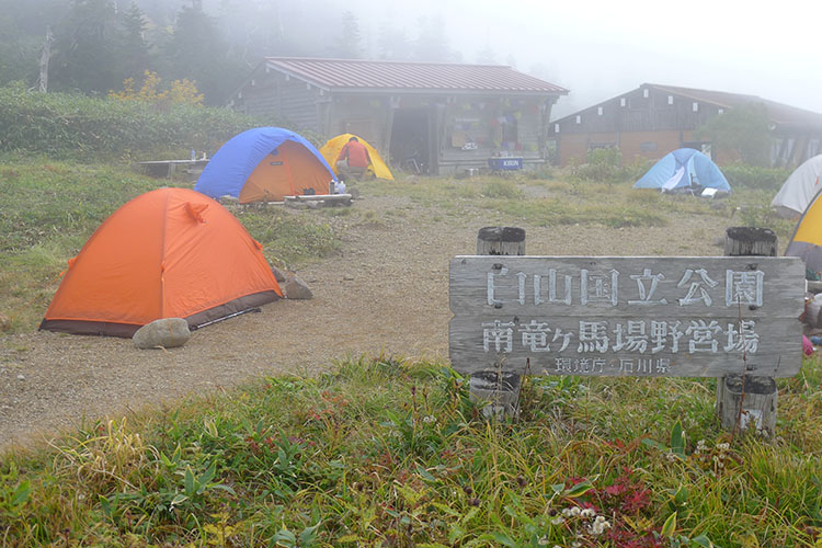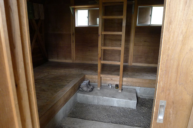 美女坂を下り、奥長倉避難小屋へ。誰もいなかったが、二階に1人分の荷物があり、しばらくすると男性単独行者が3人やってきた。1人は三ノ峰避難小屋から、あとの2人はここから白山を往復したらしい。