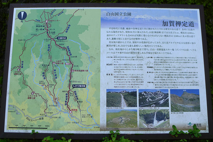山岳信仰においては、山頂(禅頂)を目指す修行の道として、「禅定道」という登拝道があるそうです。白山には、加賀、越前、美濃の3つの禅定道があり、そのうちの美濃禅定道から白山、加賀禅定道を歩いてきました。