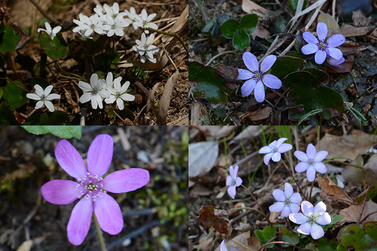 | <越後丘陵公園の雪割草> | <大崎雪割草の里の雪割草> |