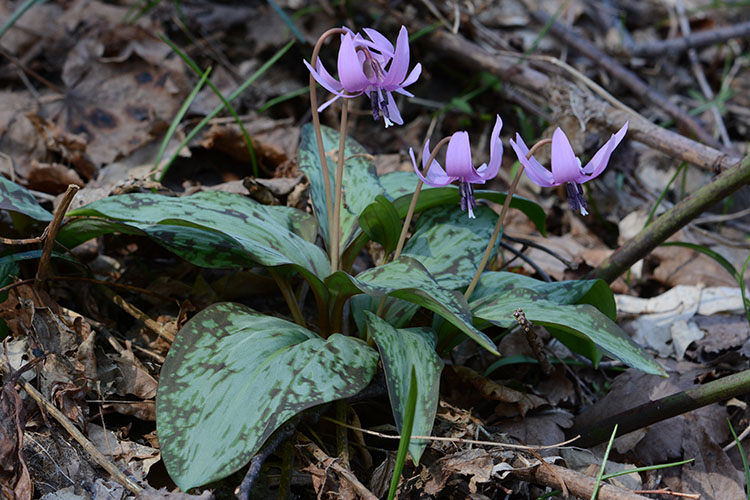 | <カタクリ> | <白花のカタクリ> | <カタクリ> |