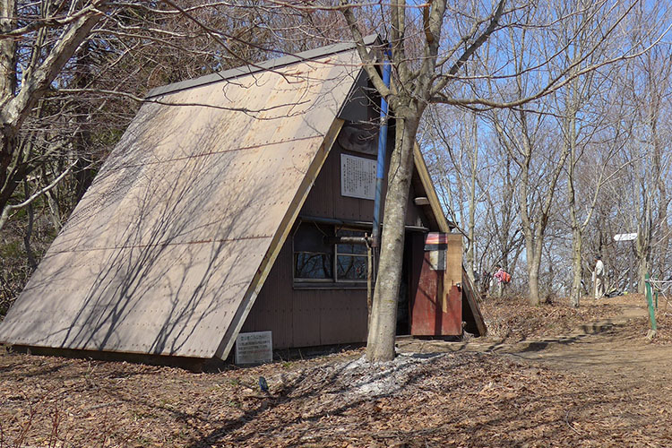 | <山頂の避難小屋> | <登山道沿いのカタクリ> | <カタクリの群落> |
