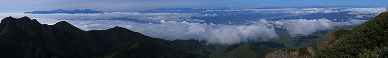 阿弥陀岳山頂からのパノラマ(ここをクリックすると、拡大写真が別ウィンドウに表示されます。)