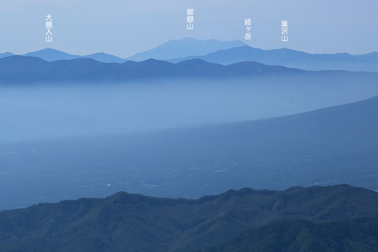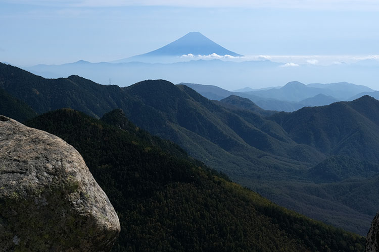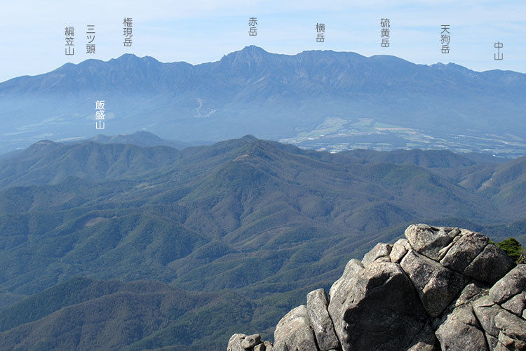 瑞牆山山頂からは富士、南アルプス、御嶽、北アルプス、妙高、浅間山などが見えた。