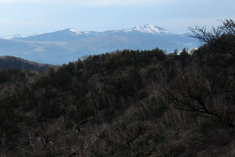 賽の河原周辺はアカヤシオが散っていて、それらしい木はたくさんあったが花はなかった。小丸山に近づくとアカヤシオがちらほらと残っていた。赤城山、日光白根山らしき山が見えた。
