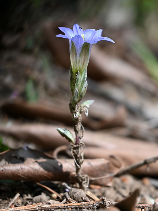 帰りは和田町に下りた。林の中にフデリンドウと満開のアオダモがあった。